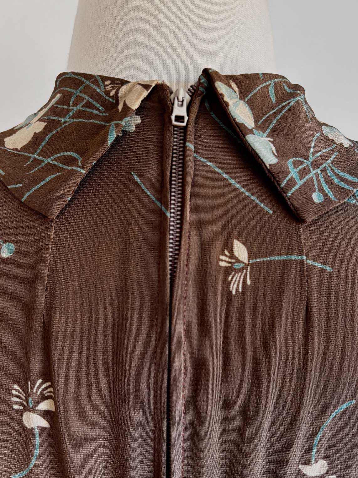 Vintage 1940s Dress - Smart Cocoa + Delphite Blue Floral R&K Originals Dress Size S to M