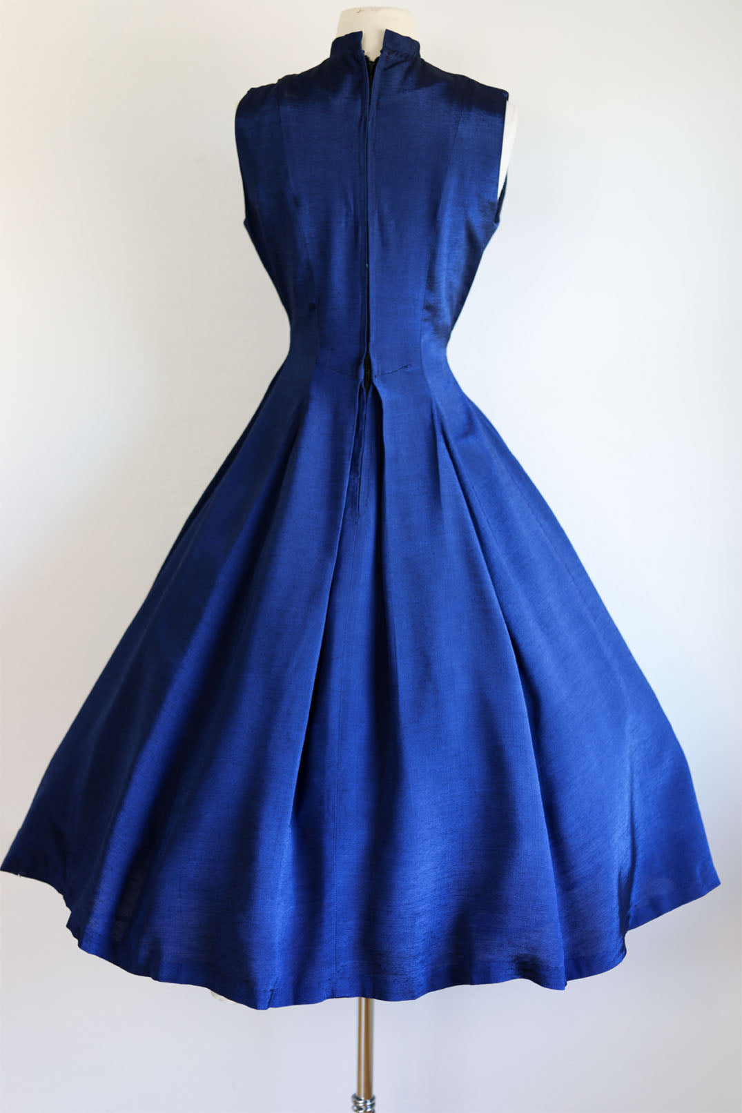 Stunning electric sapphire shimmer rayon vintage 1950s princess dress by Harford Frock.