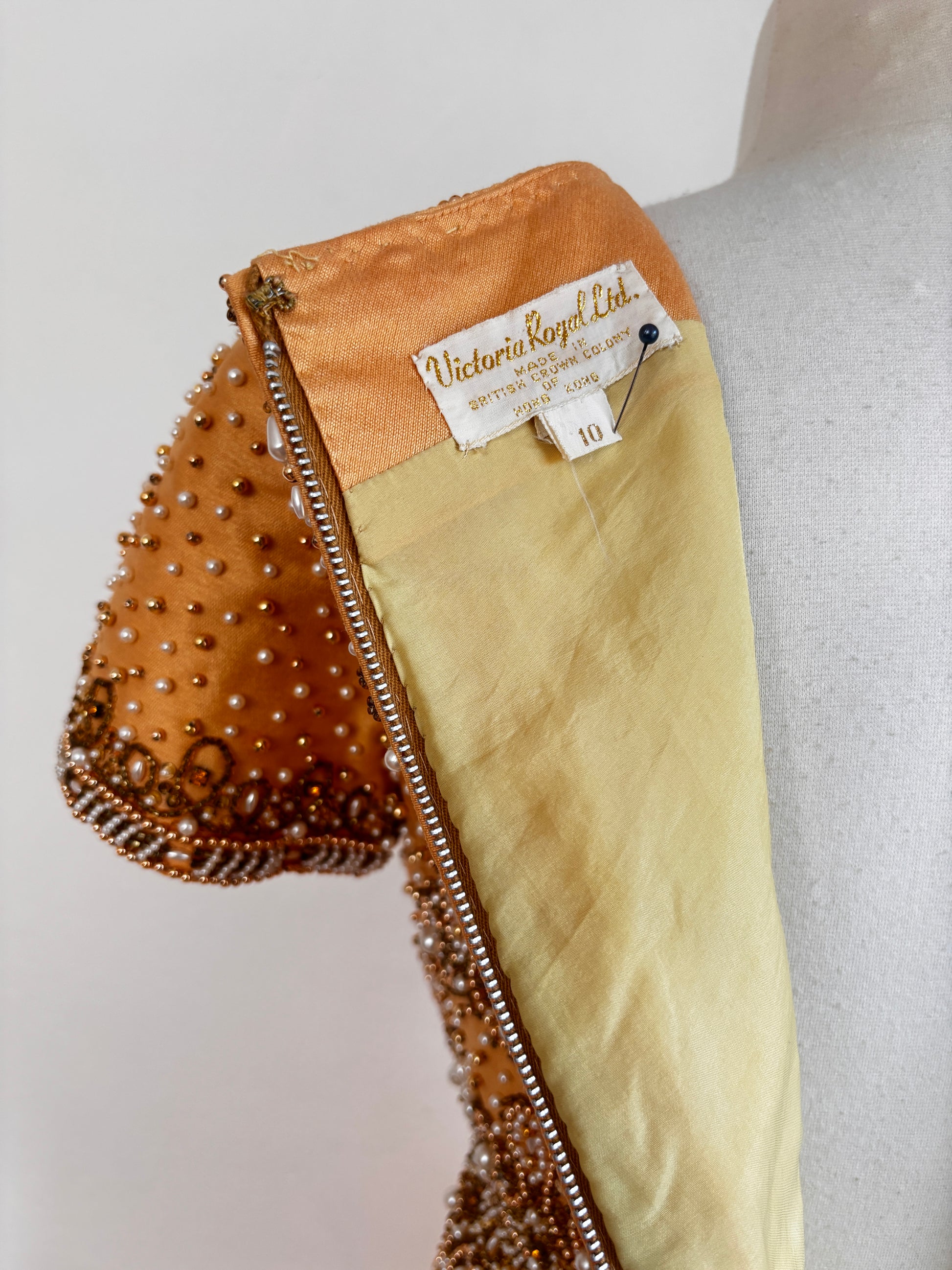 Vintage 1960s Beaded Dress - Pale Butterscotch Heavily Beaded Designer Cocktail Dress Size S