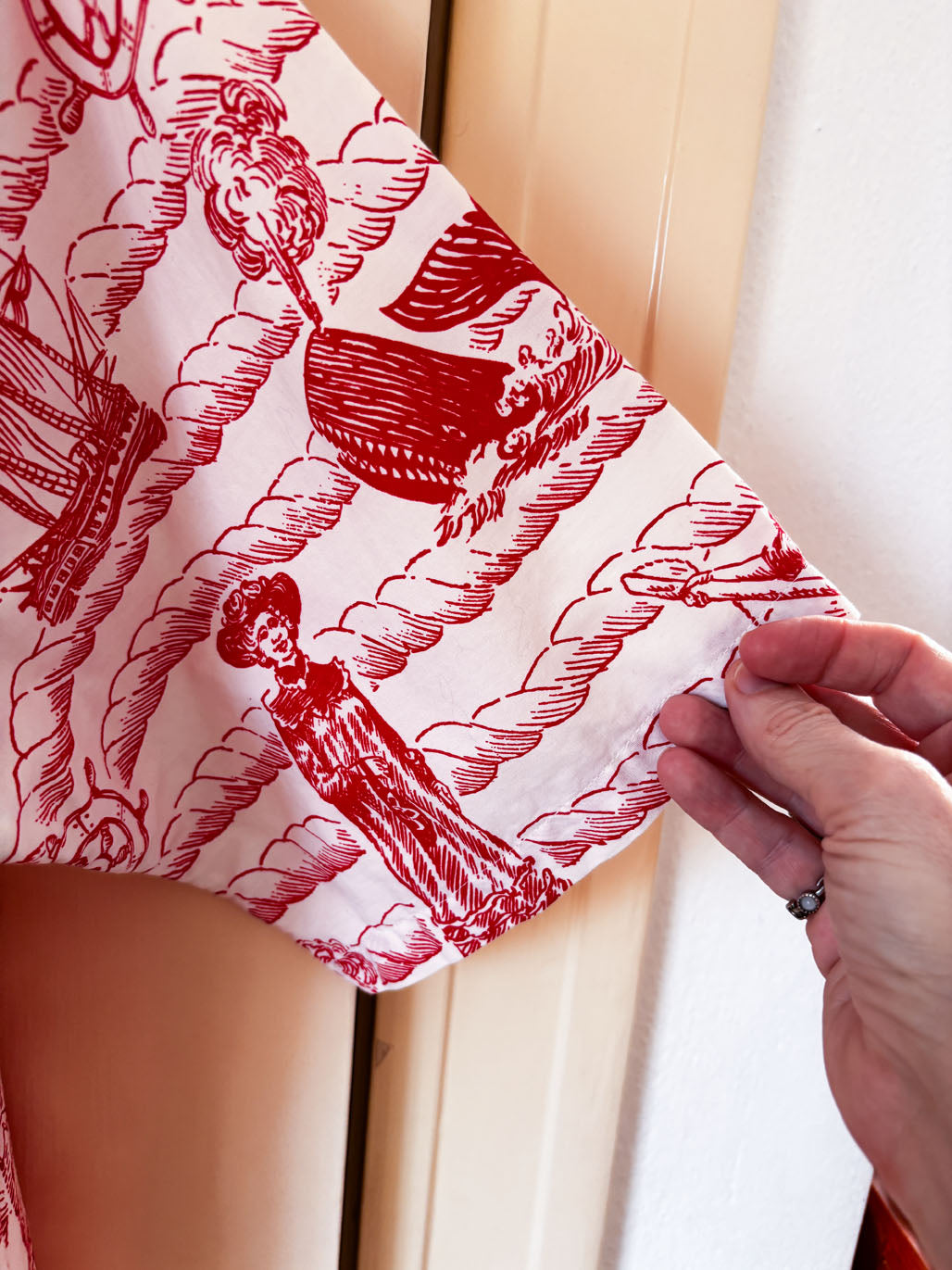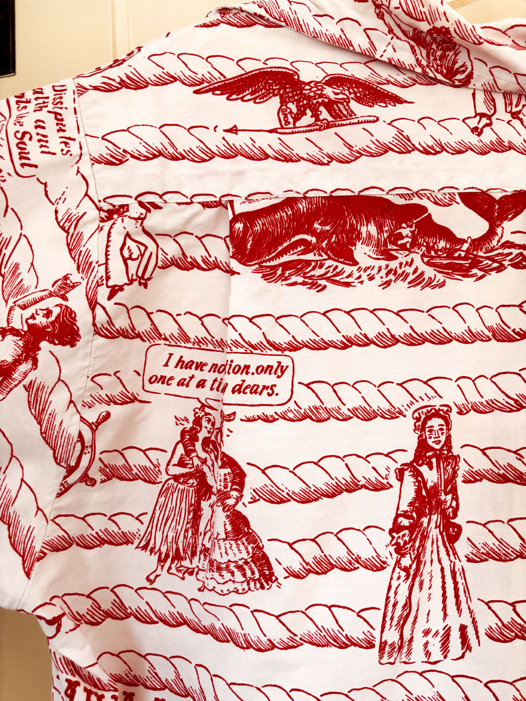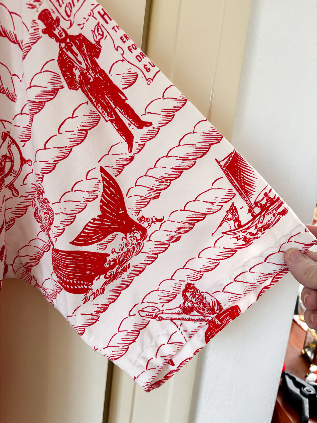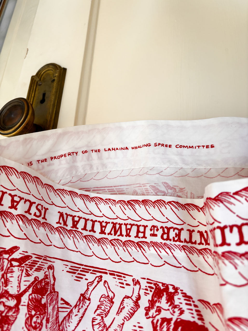 The selvedge is signed "This design is the property of the Lahaina Whaling Spree Committee." From my research, this was apparently a yearly festival taking place in Lahaina. Guessing this was a uniform for fellas serving at the big event in some capacity or another -- at any rate, doubt there are many of these to be found out there. There are none online I could find to compare.