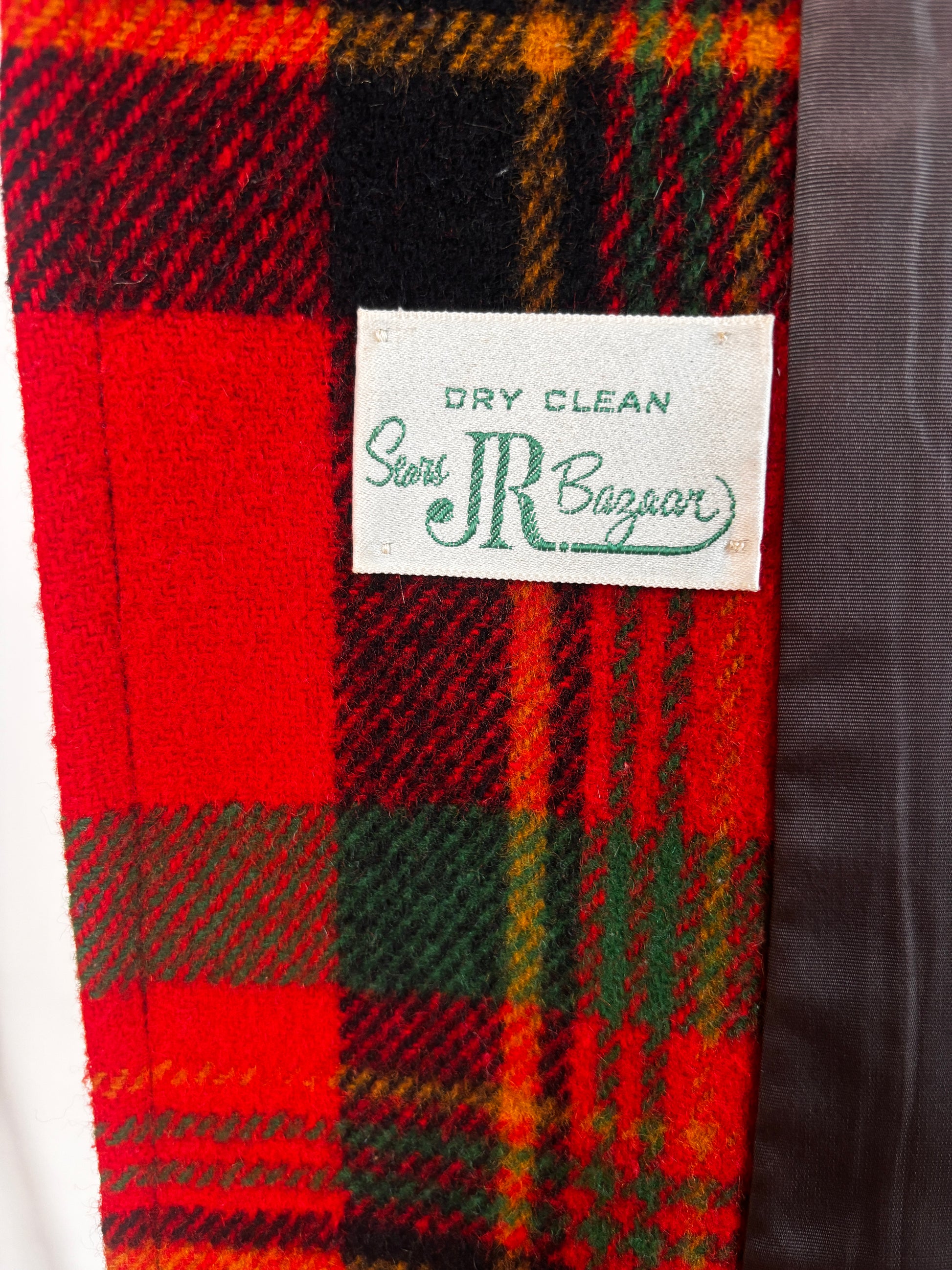 Rare red tartan wool/wool blend vintage early 1970s (borrowing details from the 40s) wrap coat with fitted, belted inset waist + pockets and a great shorter cut that makes it a cinch to wear.